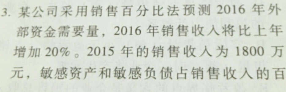 2.甲公司采用銷售百分比法預(yù)測2017年外部資金需要量,2017年銷售收入將比上年增長20%。2016年度銷售收入為2000萬元,敏感資產(chǎn)和敏感負(fù)債分別占銷售收入的59%和14%,銷售凈利率為10%,股利支付率為60%。若甲公司2017年銷售凈利率、股利支付率均保持不變,則甲公司2017年外部融資需求量為( )萬元。