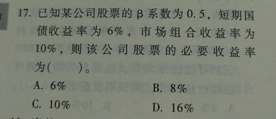 9.2016年,MULTEX公布的甲公司股票的β系數(shù)是1.15,市場上短期國庫券利率為3%、標(biāo)準(zhǔn)普爾股票價格指數(shù)的收益率是10%,則2016年甲公司股票的必要收益率是( )。