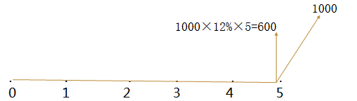 【教材例】有一5年期國債,面值1 000元,票面利率12%,單利計息,到期時一次還本付息。假設年折現(xiàn)率為10% ,其價值為: