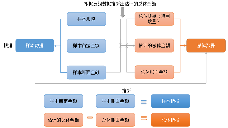 推斷的總體錯報=總體賬面金額-估計的總體金額