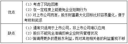 【提示1】利潤最大化的另一種表現(xiàn)方式是每股收益最大化,相比較利潤最大化來說,其優(yōu)點是反映了所創(chuàng)造利潤與投入資本之間的關系。缺點是并沒有彌補利潤最大化目標的其他缺陷。