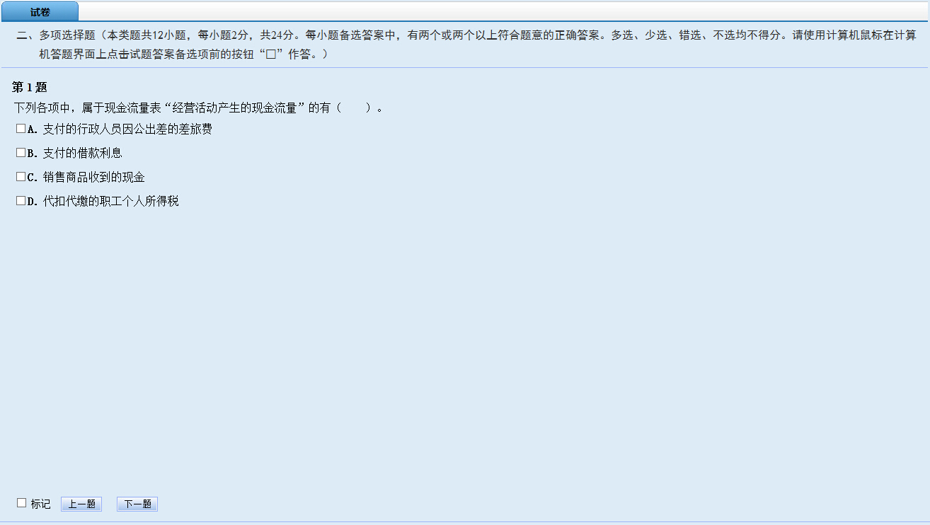 (1)不定項選擇題答題時,考生直接用鼠標點擊備選項中認為正確的所有選項前的按鈕即可。如需撤銷已經(jīng)選中的選項,再次點擊該選項前的按鈕即可。