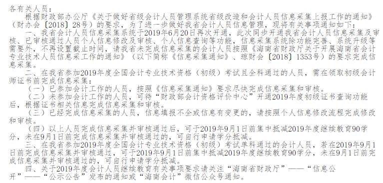 海南《關(guān)于開通海南省會(huì)計(jì)人員信息采集系統(tǒng)個(gè)人信息采集、修改等功能的通知》: