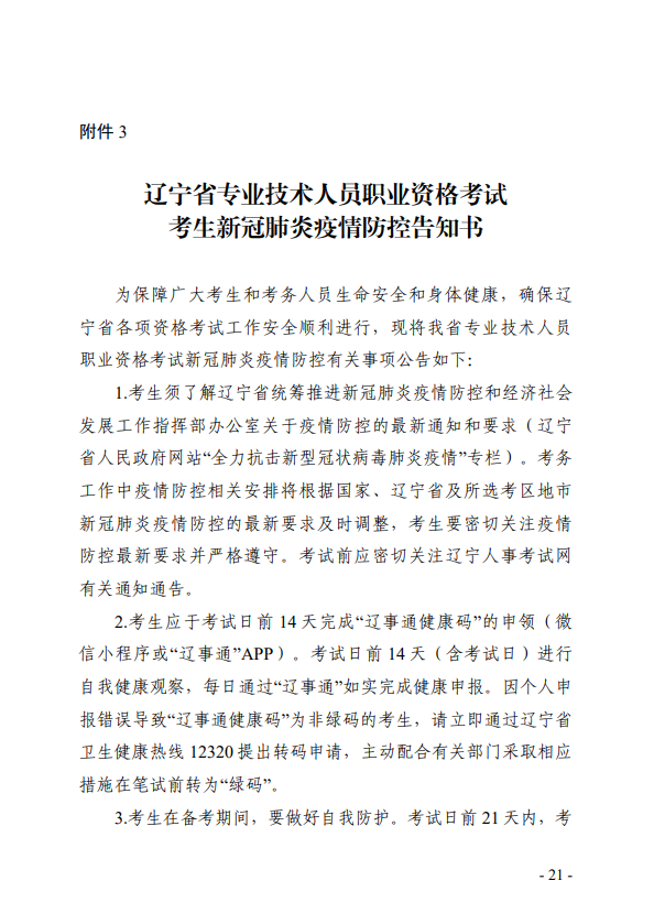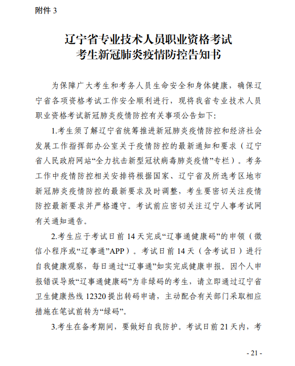 遼寧省專業(yè)技術(shù)人員職業(yè)資格考試考生新冠肺炎疫情防控告知書