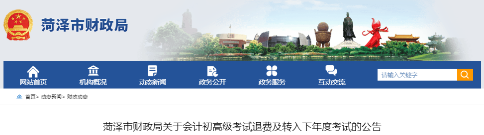 山東菏澤市關(guān)于初級會計考試退費(fèi)及轉(zhuǎn)入下年度考試的公告