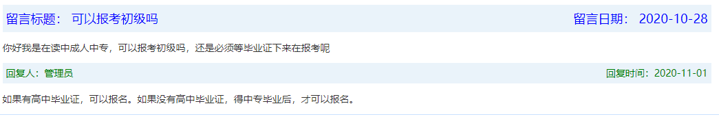 需要注意的是,很多考生好奇【在讀中專生是否可以報(bào)考初級(jí)呢?】官方的回復(fù)如下。
