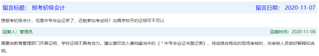 有考生提問,【中專畢業(yè)證丟了可以報(bào)考嗎?】,以吉林省為例,官方回復(fù)如下。