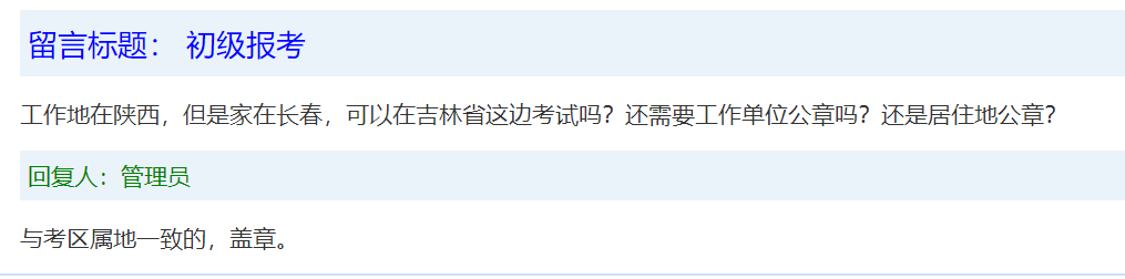 報(bào)考人員只能在現(xiàn)工作單位所在地、學(xué)籍所在地或居住地進(jìn)行報(bào)名,以吉林省為例,考生可在工作地或者戶籍所在地報(bào)考初級(jí),只要蓋與考區(qū)屬地一致的章即可。