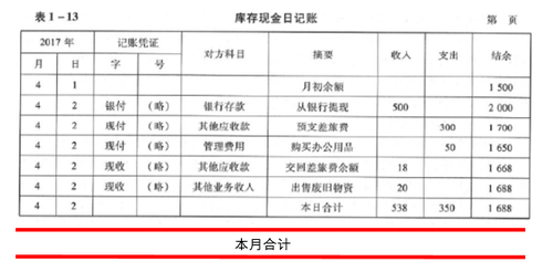 (2)庫存現金、銀行存款日記賬和需要按月結計發(fā)生額的收入、費用等明細賬,每月結賬時,要在最后一筆經濟業(yè)務記錄下面通欄劃單紅線,結出本月發(fā)生額和余額,在摘要欄內注明“本月合計”字樣,并在下面通欄劃單紅線。