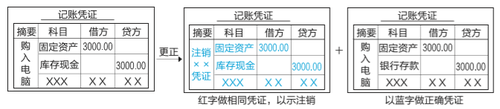更正方法:①記賬后發(fā)現記賬憑證科目錯誤的,如下圖所示更正記賬憑證,并據以分別用紅字和藍字登記入賬。