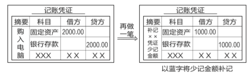 適用情形:記賬后發(fā)現記賬憑證和賬簿記錄中應借、應貸會計科目無誤,只是所記金額小于應記金額時,應當采用補充登記法。