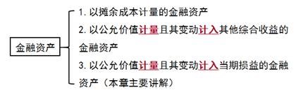 根據(jù)企業(yè)管理金融資產(chǎn)的業(yè)務(wù)模式和金融資產(chǎn)的合同現(xiàn)金流量特征,《企業(yè)會計準(zhǔn)則第22號—金融工具確認和計量》(2018)將金融資產(chǎn)劃分為: