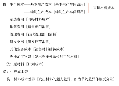 結(jié)轉(zhuǎn)材料成本差異 | 借:材料成本差異[借方超支] 貸:材料采購 借:材料采購 貸:材料成本差異[貸方節(jié)約] |