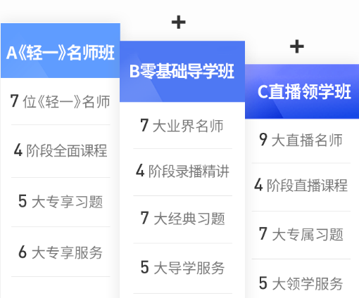 B零基礎(chǔ)導(dǎo)學(xué)班:7大業(yè)界名師、4階段錄播精講、7大經(jīng)典習(xí)題、5大導(dǎo)學(xué)服務(wù);