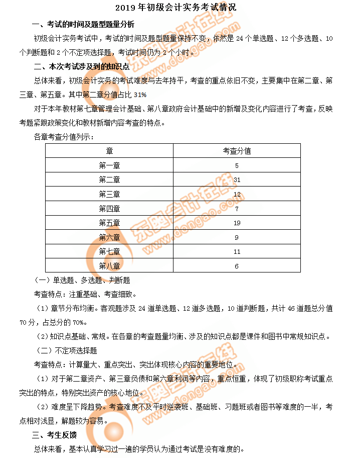 通過以上內(nèi)容不難發(fā)現(xiàn),2019年《初級會計實務(wù)》考試難度適中,認真跟老師學(xué)習(xí)過一遍的考生,通過考試都是沒有太大問題的。希望后面批次的考生能夠結(jié)合考情分析和考生考后討論,總結(jié)經(jīng)驗,決勝初級!