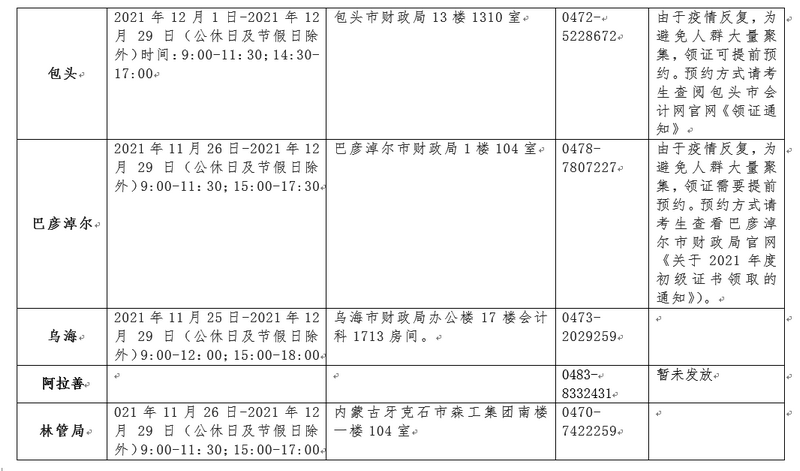 內(nèi)蒙古呼倫貝爾2021年初級(jí)會(huì)計(jì)證書領(lǐng)取通知