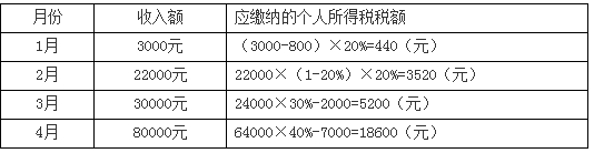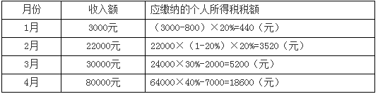 【正確答案】:相聲演員郭某每周四固定到甲茶樓“走穴”演出,2014年1月至4月取得的收入如下: