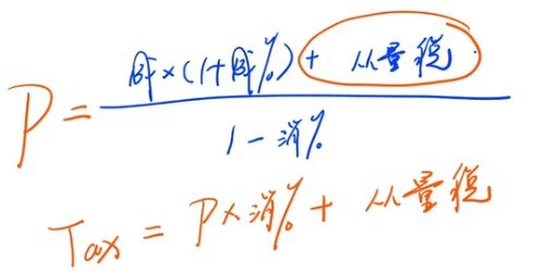 組成計稅價格=成本×(1+成本利潤率)÷(1-消費(fèi)稅比例稅率)