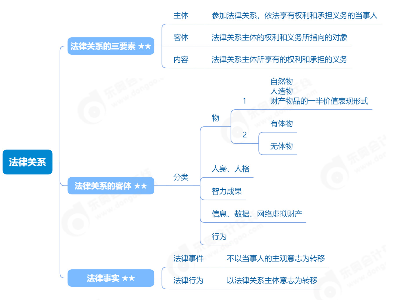 2023年初級(jí)會(huì)計(jì)《經(jīng)濟(jì)法基礎(chǔ)》第一章法律關(guān)系知識(shí)點(diǎn)思維導(dǎo)圖