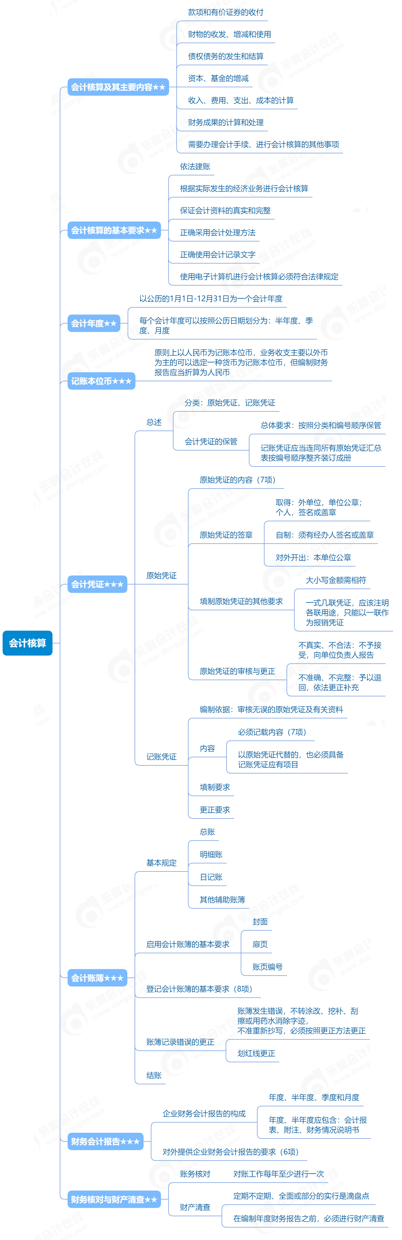 掌握 | 1.會計核算的法律規(guī)定 2.會計檔案管理的規(guī)定 3.會計監(jiān)督的規(guī)定 4.會計崗位設(shè)置的規(guī)定 5.會計人員的規(guī)定 |