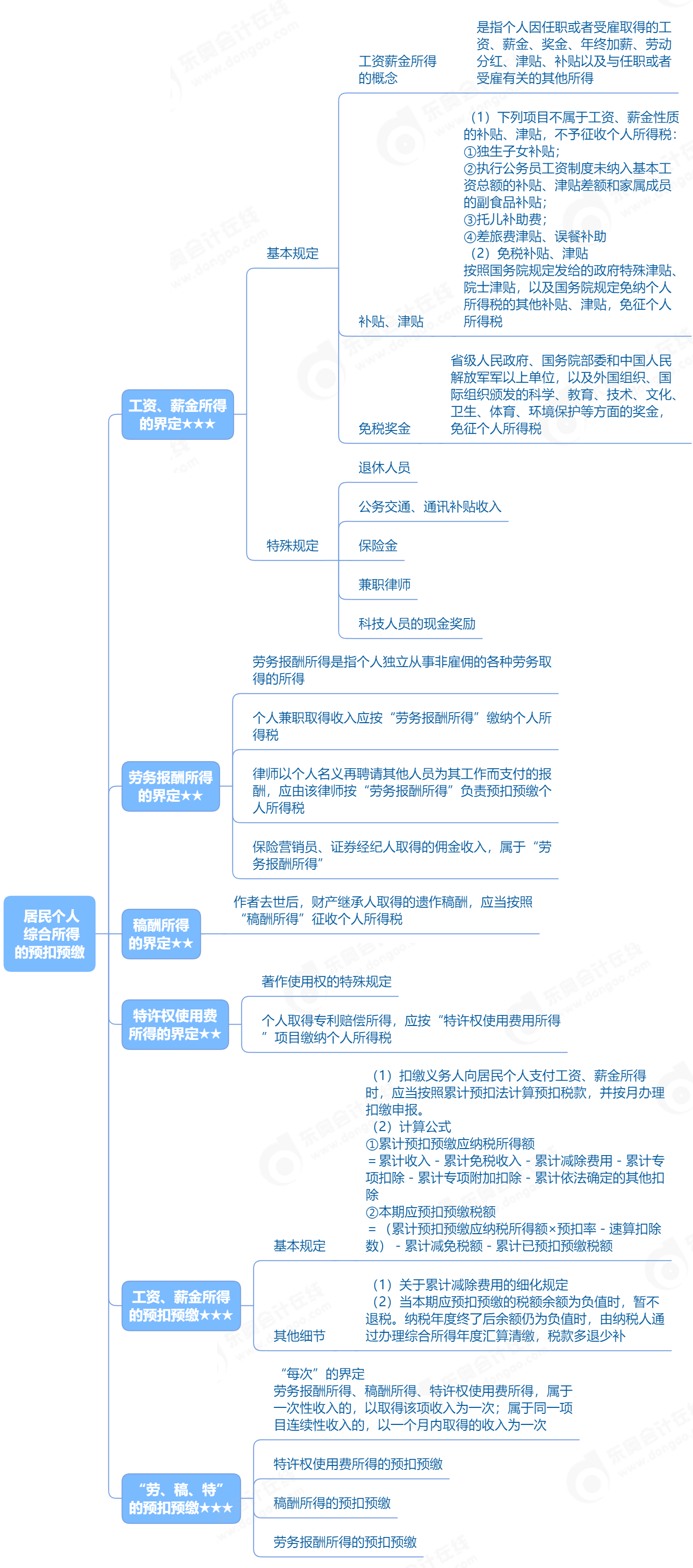 初級(jí)會(huì)計(jì)考試在5月13日開(kāi)始,考生們準(zhǔn)備的怎么樣了?為了幫助大家更好的掌握第五章居民個(gè)人綜合所得的預(yù)扣預(yù)繳知識(shí)點(diǎn),東奧特為大家把相關(guān)內(nèi)容整理成思維導(dǎo)圖,方便大家學(xué)習(xí)!