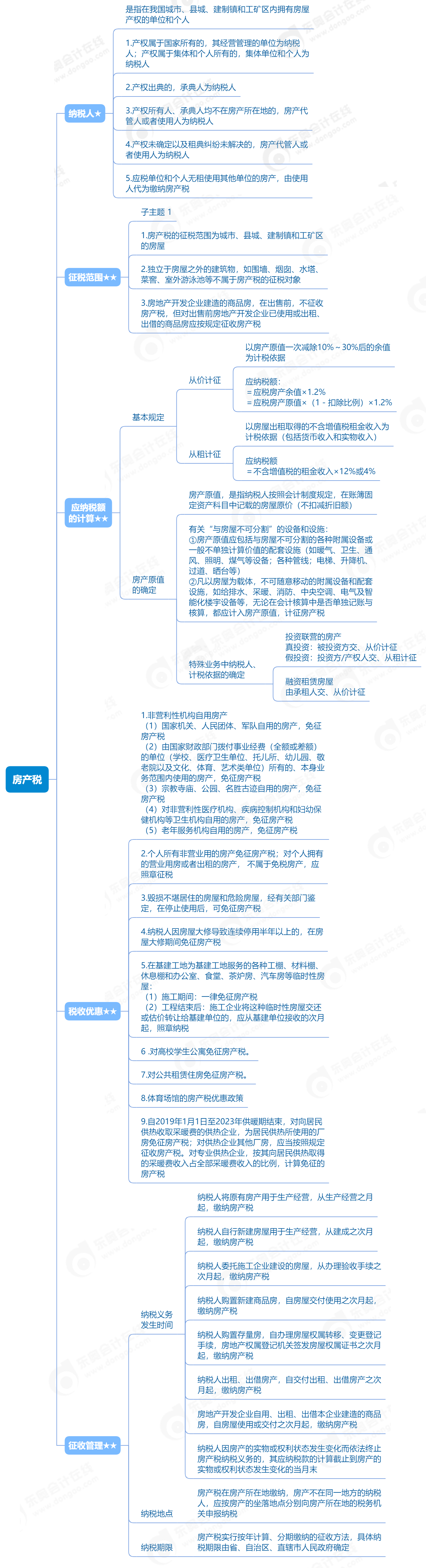 2023年初級會計《經(jīng)濟(jì)法基礎(chǔ)》房產(chǎn)稅知識點思維導(dǎo)圖