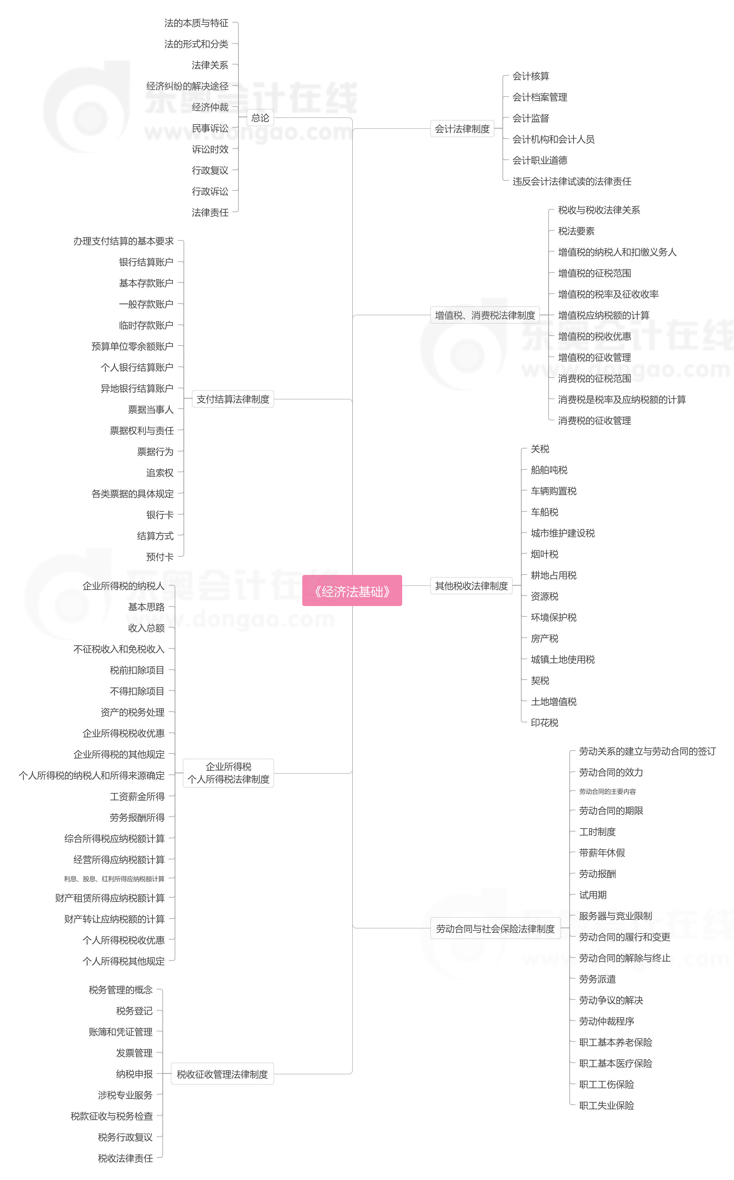 《經(jīng)濟(jì)法基礎(chǔ)》科目涉及到較多的法律條文,考生在學(xué)習(xí)時(shí)要記得定期鞏固,下面東奧小編為大家整理了本科目的思維導(dǎo)圖,建議考生收藏。