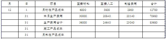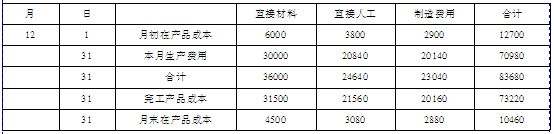 (2)填列答題卡指定位置中的“產(chǎn)品成本明細賬”各空白欄目的金額。