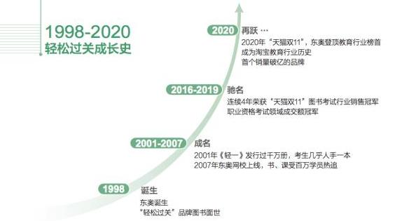 好產品自然引來識貨人,自1998年東奧《輕松過關》系列圖書面世以來,不僅好評如潮,銷量也是很好——2020年“天貓雙11”,東奧登頂教育行業(yè)榜首成為淘寶教育行業(yè)歷史銷售量破億的品牌。