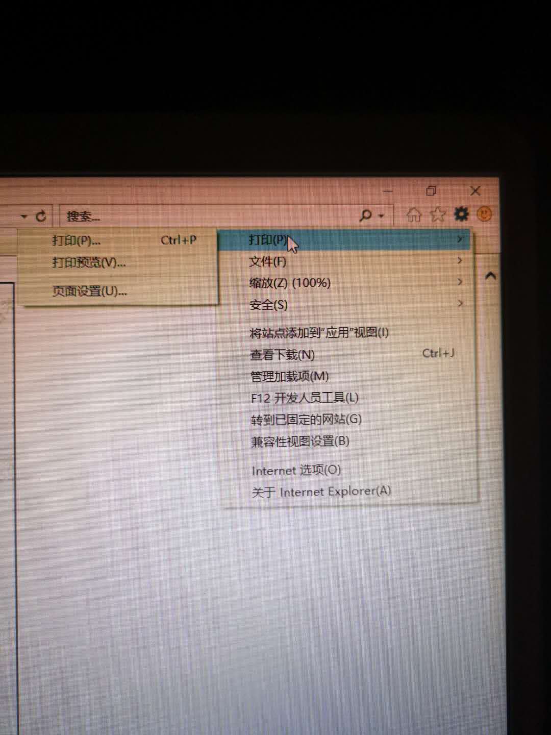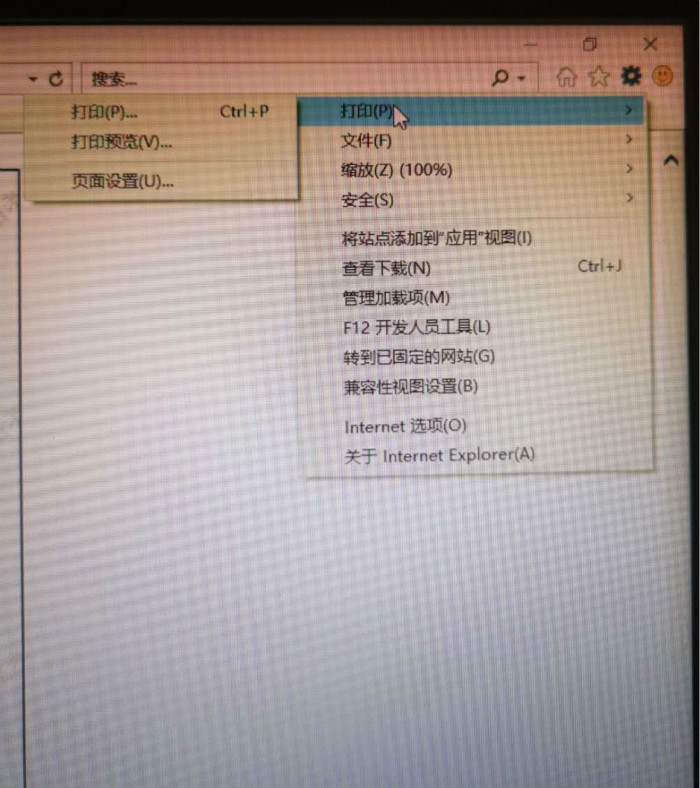 建議考生選擇IE瀏覽器打印準(zhǔn)考證,進(jìn)入打印頁(yè)面后,大家可以點(diǎn)擊瀏覽器上方設(shè)置按鈕,選擇菜單中的打印,進(jìn)入頁(yè)面設(shè)置頁(yè)面。
