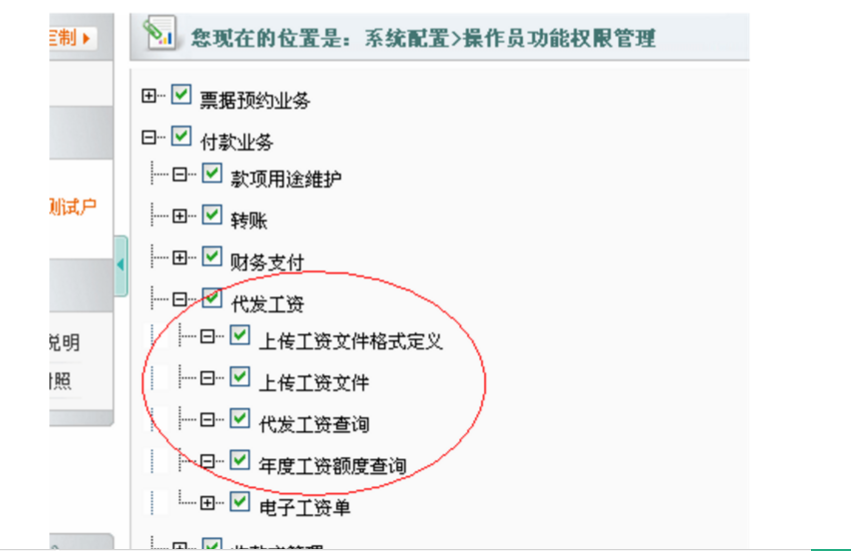 管理員使用K寶登錄網(wǎng)銀,選擇“系統(tǒng)配置”―“操作員功能權(quán)限管理”菜單中將操作員的代發(fā)工資菜單權(quán)限“打勾”
