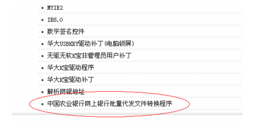 www.95599e.net―“網(wǎng)銀客服支持中心”―“軟件下載”中下載“中國農(nóng)業(yè)銀行網(wǎng)上銀行批量代發(fā)文件轉(zhuǎn)換程序”,解壓縮即可使用。