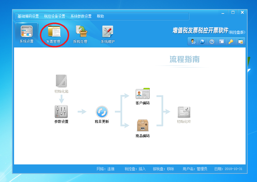 第三步:登錄后,顯示“系統(tǒng)設置”界面,單擊“發(fā)票管理”