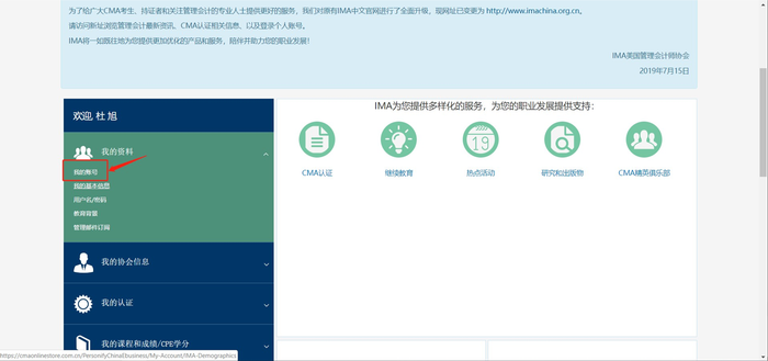 如需查詢您的IMA用戶編號(hào),請(qǐng)點(diǎn)擊“我的資料”中“我的賬號(hào)”