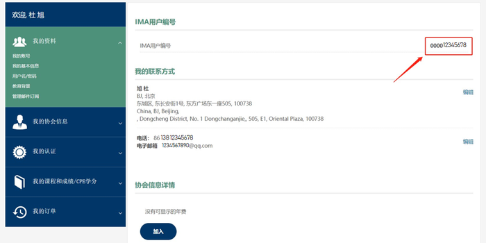 箭頭所指即您的IMA用戶編號(hào),格式通常 為以0開頭后面7位或8位數(shù)字