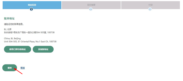 確認(rèn)地址信息,點(diǎn)擊“繼續(xù)”