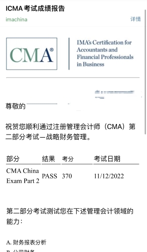 IMA官方會以電子郵件的形式將cma考試成績發(fā)送給各個考生。