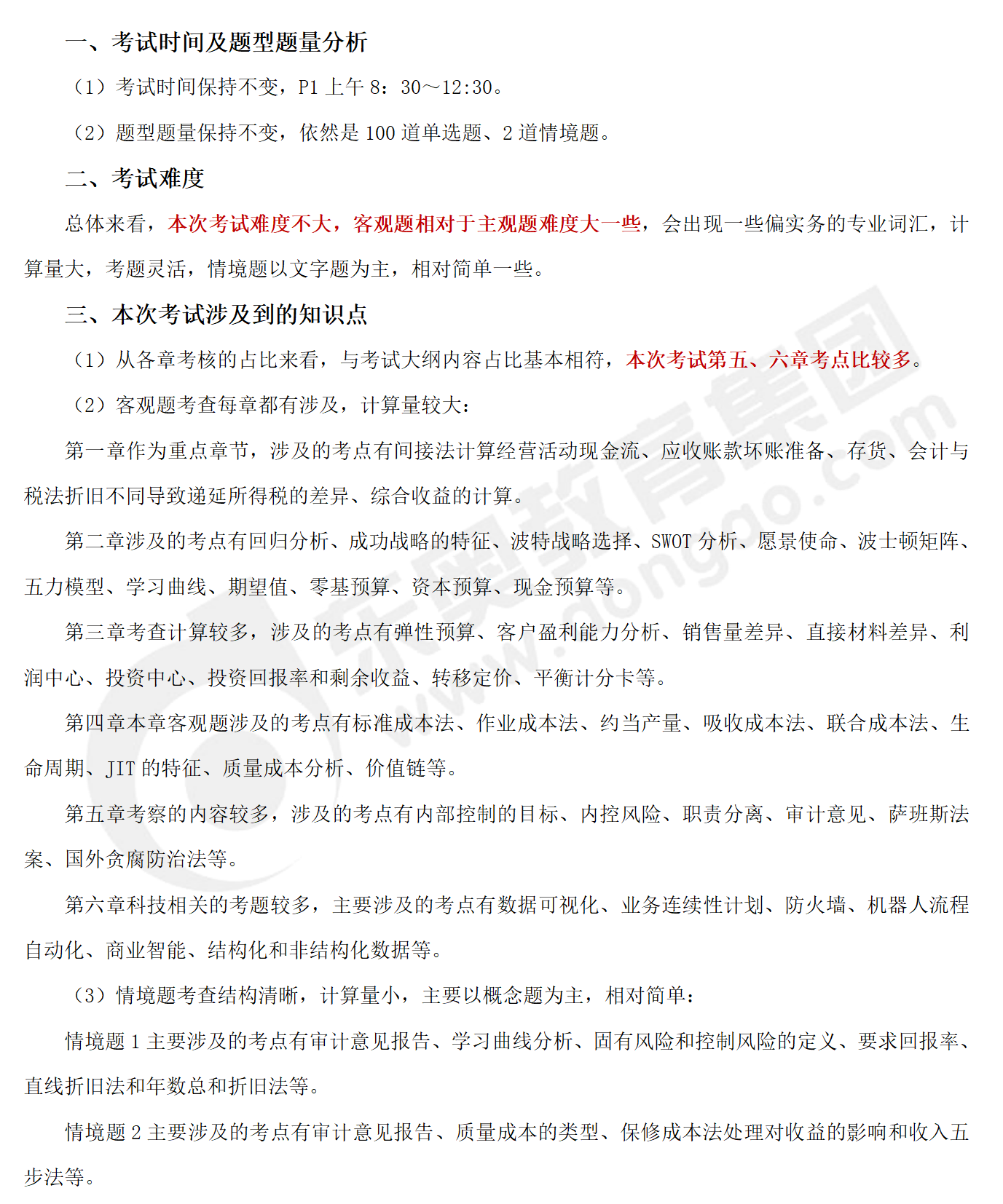 速看!2023年4月8日cma考試P1科目考情分析