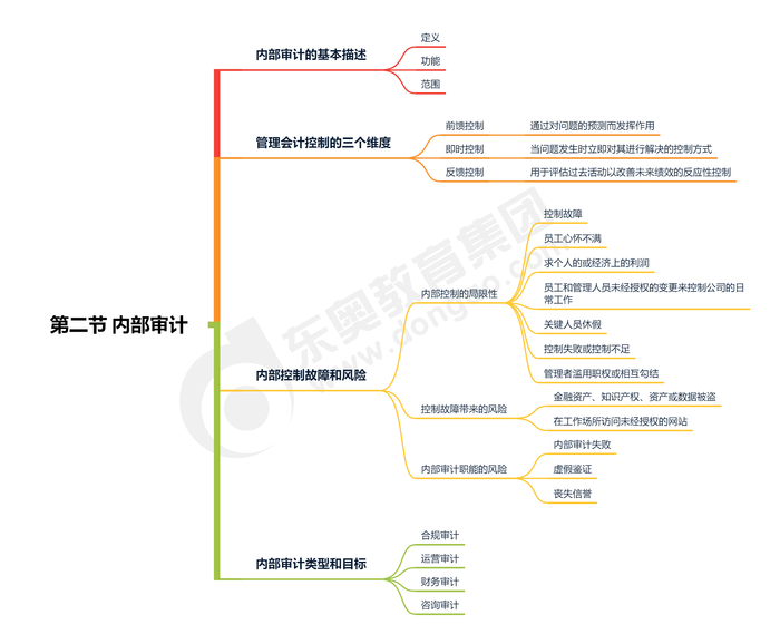 做的事情,你能夠有遺憾,但不能夠有后悔!當(dāng)你覺(jué)得備考cma很苦的時(shí)候,請(qǐng)看看你周?chē)?,看看這個(gè)世界別的人,必須會(huì)有人比你更苦,因此千萬(wàn)別太難過(guò)。以下是東奧會(huì)計(jì)在線為大家準(zhǔn)備的2023年cma考試P1科目第五章第二節(jié)內(nèi)部審計(jì)知識(shí)點(diǎn)思維導(dǎo)圖,一起來(lái)學(xué)習(xí)吧!