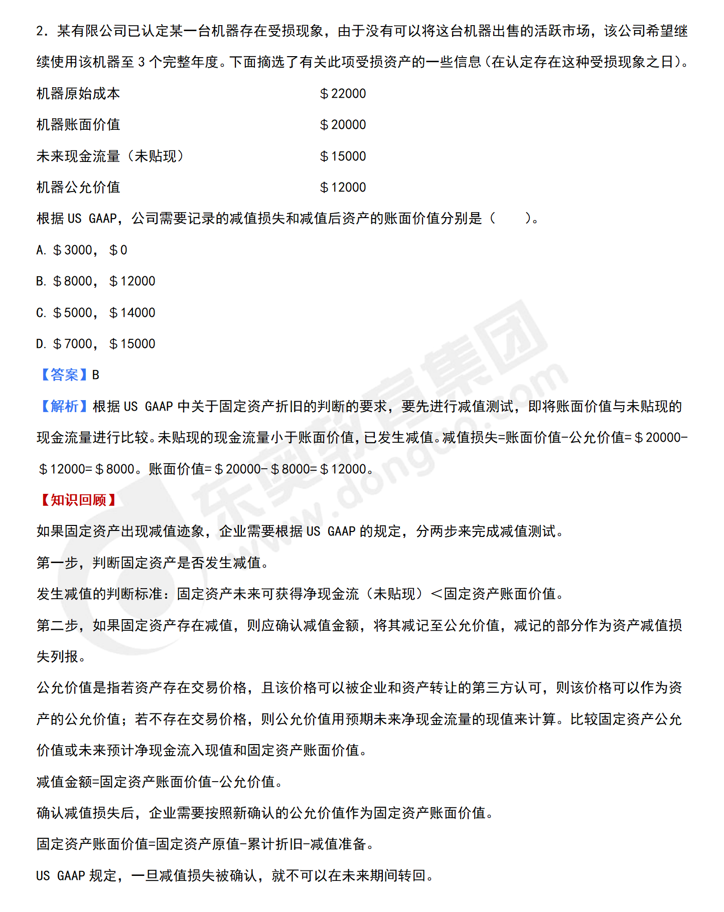 根據(jù)US GAAP,公司需要記錄的減值損失和減值后資產(chǎn)的賬面價值分別是( )。