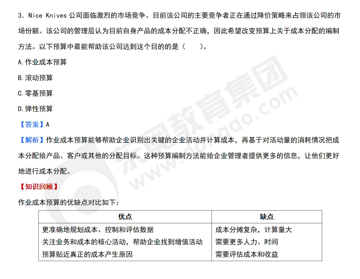 A.作業(yè)成本預(yù)算