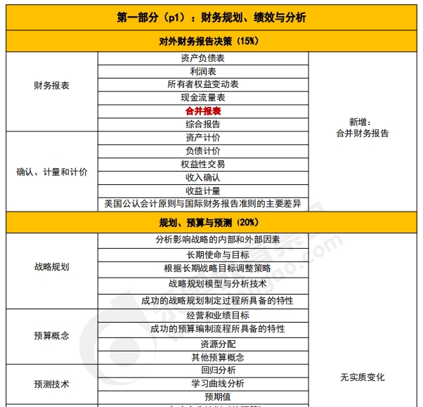 p1科目新增知識點(diǎn)包括:合并報(bào)表,邊際貢獻(xiàn),其他成本系統(tǒng),內(nèi)部控制測試方法,控制缺陷補(bǔ)救和數(shù)據(jù)管理。