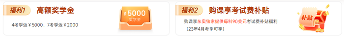 (3)獎(jiǎng)勵(lì)說明:2023年4月考季,一次性報(bào)考兩科并且全部通過,可獲得5000元(稅前)獎(jiǎng)學(xué)金,2023年7月考季,一次性報(bào)考兩科并且全部通過,可獲得2000元(稅前)獎(jiǎng)學(xué)金。