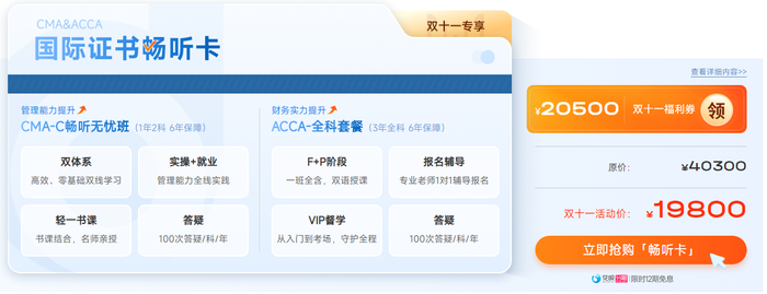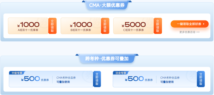 雙11優(yōu)惠返場(chǎng)!購23年CMA暢聽C班直降¥5000!再贏¥5000獎(jiǎng)學(xué)金!