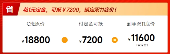 只需1元,就能鎖定cma好課!今年的雙十一,讓你花更少的錢買到更合適的課程!付定金1元可鎖定C班雙十一底價(jià),可抵7200元!定金預(yù)付截止時(shí)間為10月31日,想?yún)⒓涌荚嚨目忌s緊抓緊行動(dòng)吧!