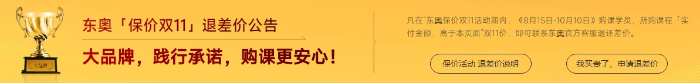 凡在“東奧保價(jià)雙11活動(dòng)期內(nèi),《8月15日-10月10日》購課學(xué)員,所購課程「實(shí)付金額,高于本頁面」雙11價(jià),即可聯(lián)系東奧官方客服退還差價(jià)。