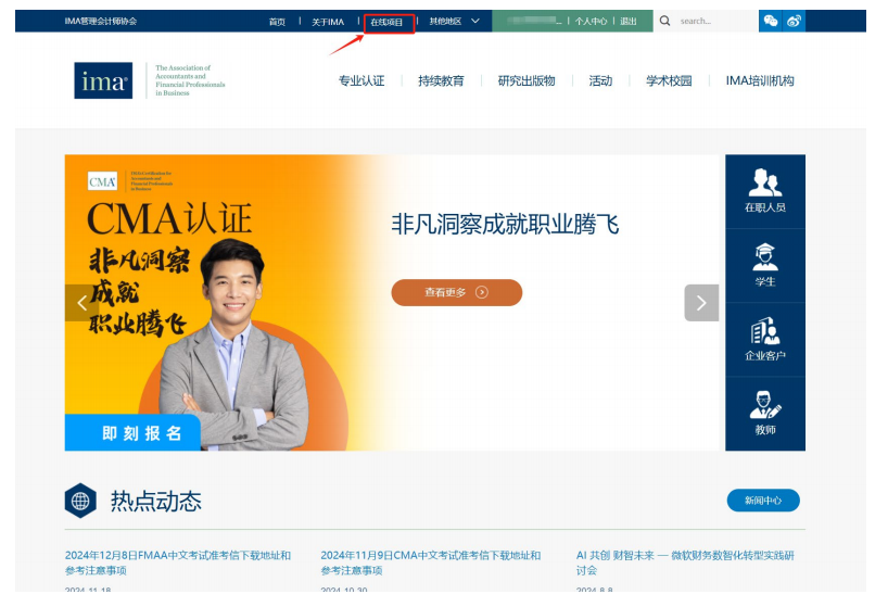 1.進(jìn)入IMA官網(wǎng)https://www.imachina.org.cn/,點(diǎn)擊在線項(xiàng)目。