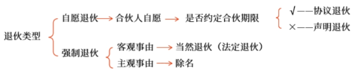 協(xié)議退伙 | 合伙協(xié)議約定合伙期限的,在合伙企業(yè)存續(xù)期間,有下列情形之一的,合伙人可以退伙: (1)合伙協(xié)議約定的退伙事由出現(xiàn) (2)經(jīng)全體合伙人一致同意 (3)發(fā)生合伙人難以繼續(xù)參加合伙的事由 (4)其他合伙人嚴(yán)重違反合伙協(xié)議約定的義務(wù) |