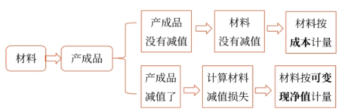 ②如果材料價(jià)格的下降表明產(chǎn)成品的可變現(xiàn)凈值低于產(chǎn)成品的成本,則該材料應(yīng)當(dāng)按其可變現(xiàn)凈值計(jì)量,按其差額計(jì)提存貨跌價(jià)準(zhǔn)備。