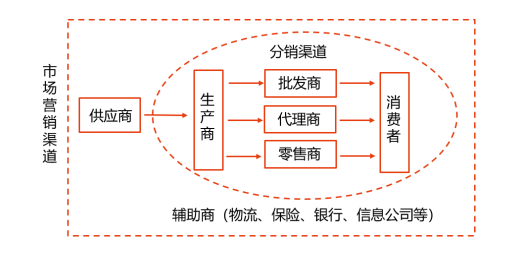 市場營銷渠道包含分銷渠道,分銷渠道只是市場營銷渠道的一部分,如下圖。